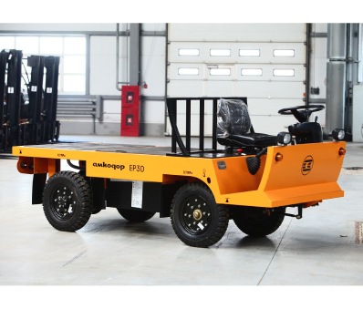 Электротележка платформенная АМКОДОР ЕР30 с питанием от аккумуляторной батареи предназначена для транспортировки различных штучных и тарных грузов внутри складских помещений и цехов, где экологически недопустимо или технически нецелесообразно применение других транспортных средств.