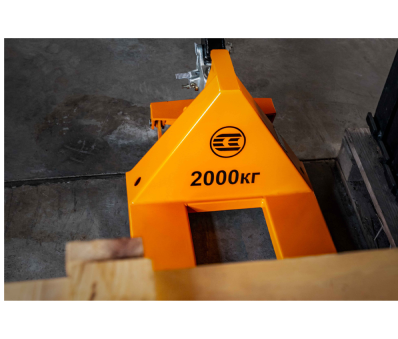 Тележка сконструирована в форме вил на маленьких колесах из полиамида и обеспечивает грузоподъемность до 2-х тонн.