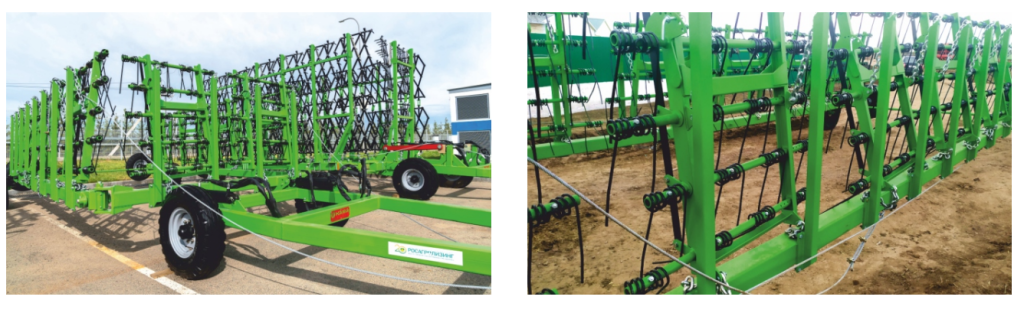 Боронование осуществляется прицепными секциями бороны с пружинными зубьями.