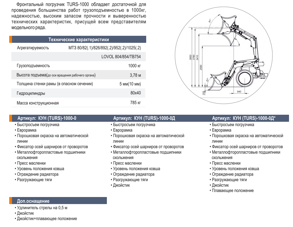 Рабочие органы для Фронтальный погрузчик TURS-1000: