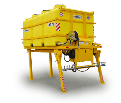 Емкость устанавливается на транспортную рессорную тележку для агрегатирования с тракторами или автомобилями.
