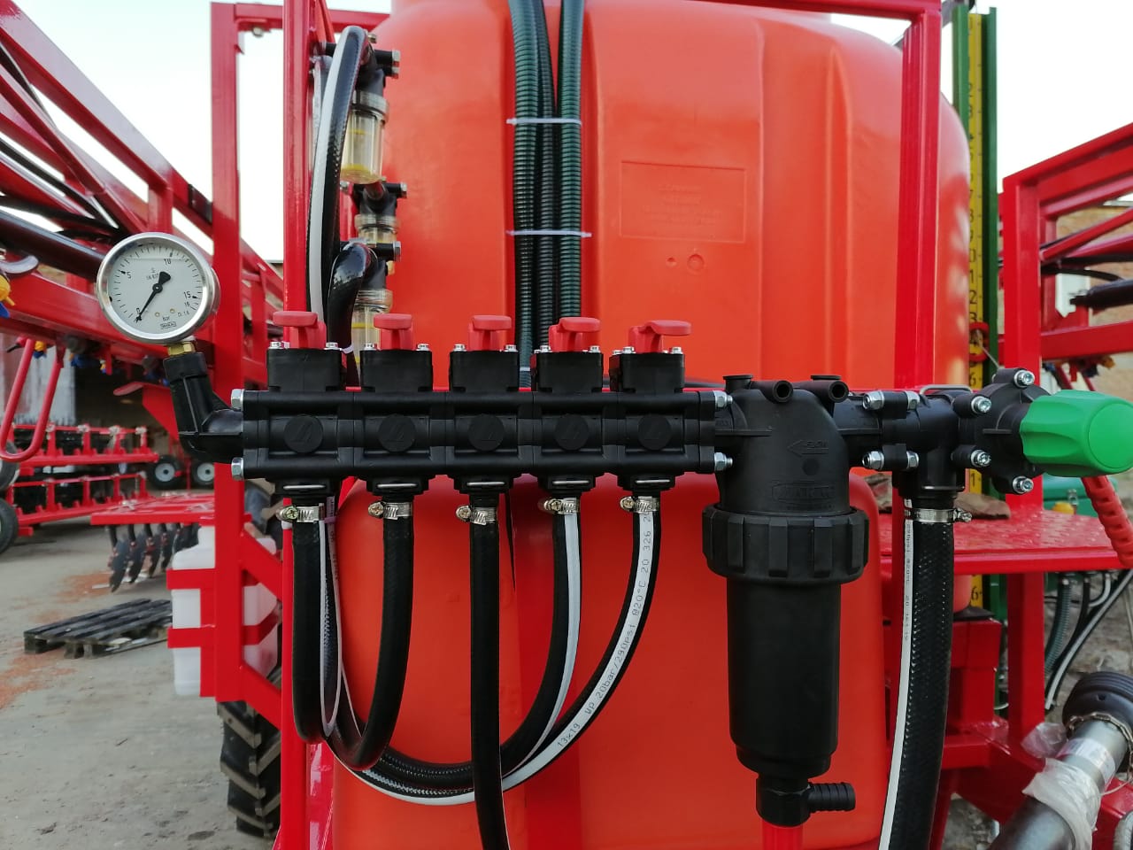 - На опрыскивателе установлено итальянское оборудование (насос, система фильтрации, гидромешалка и распределитель)