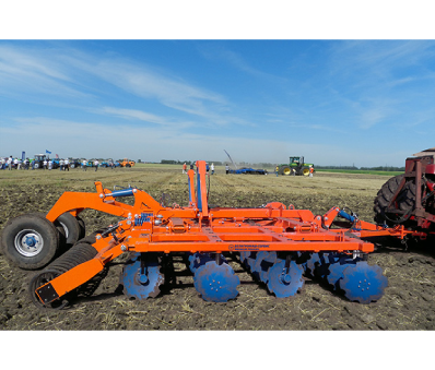 Нестандартное расположение каждого диска на индивидуальной оси, независимое рядное регулирование углов атаки дисков способствуют улучшению агротехнических показателей обработки почвы, а так же снижению тягового усилия трактора.
