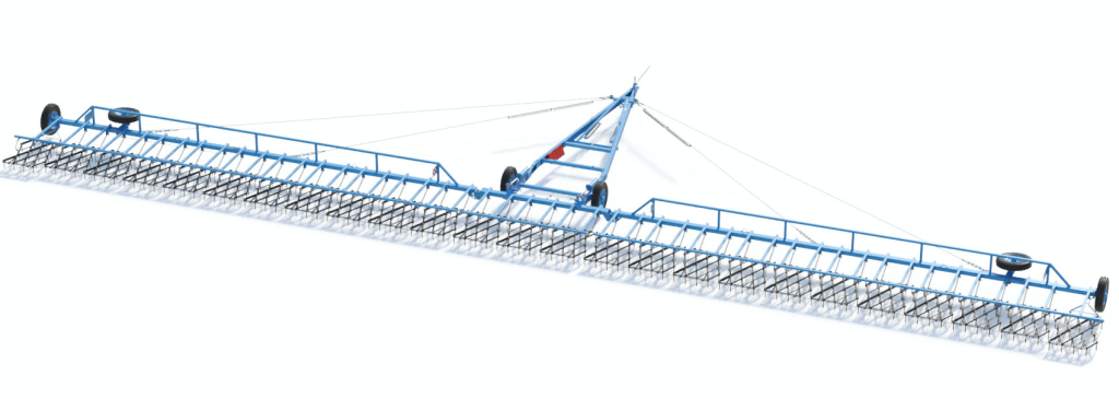 Жесткая, а не тросовая, конструкция растяжек позволяет двигаться задним ходом в рабочем положении и уменьшает радиус разворота на краю поля.