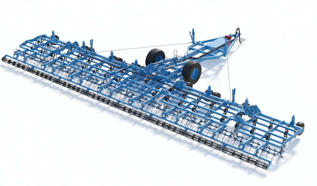 Ширина захвата культиватора — 15 м. Производительность до 15 гектаров в час.