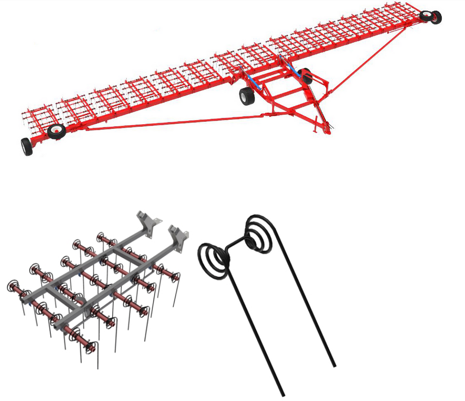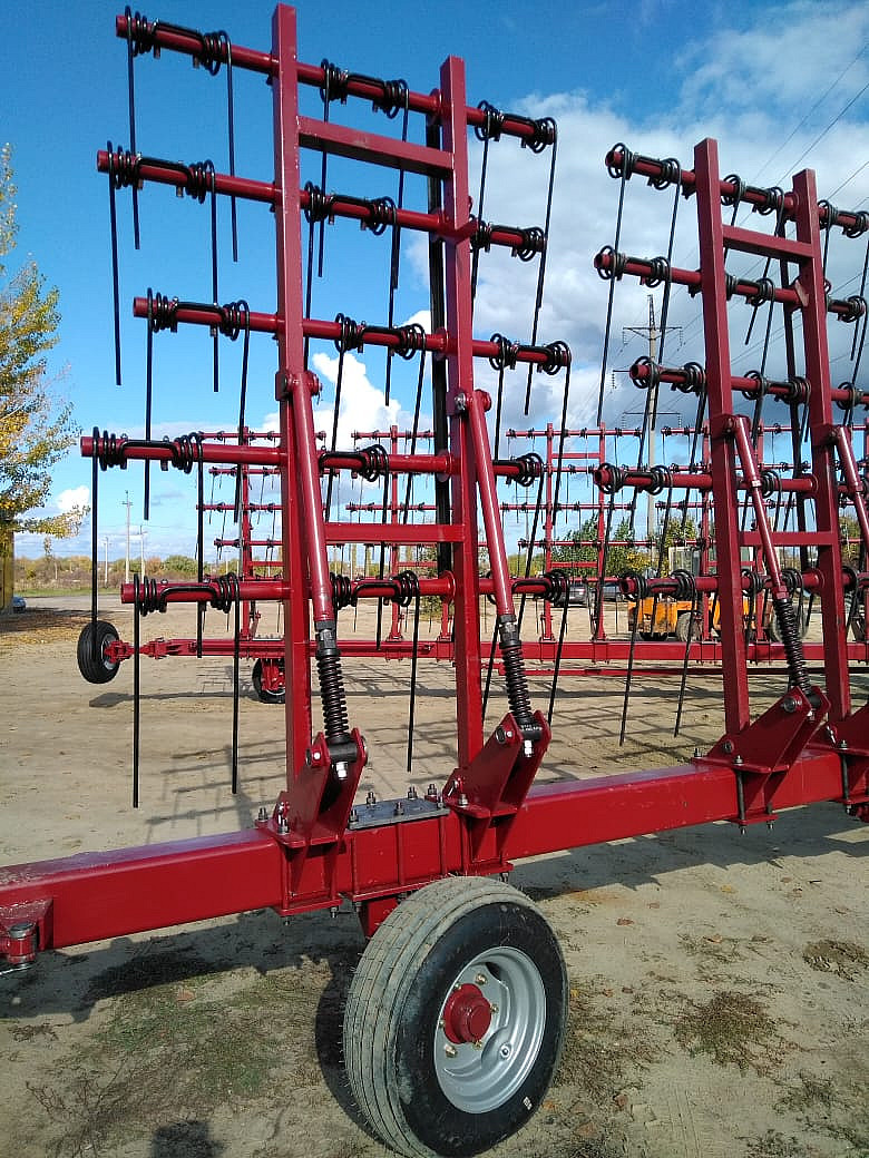 Борона пружинная предназначена для эффективной подготовки почвы. Основная сфера использования – уничтожение сорняков на посевных полях, а также – создание водного баланса в плодородном слое почв грунта и разрушение образовавшейся верхней корки. Трактор проходит с бороной данного вида, как до посевных работ, так и после сбора урожая. Поверхность поля выравнивается. Подходит для всех видов технических и зерновых культур. Борона на один проход выполняет сразу 4 операции, начиная от боронования и рыхления почвы и заканчивая заделкой удобрений.