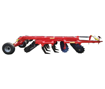В этом случае, при глубоком рыхлении до 40см, крупные комки земли, которые подымаются чизельными лапами, сразу измельчаются двумя рядами дисков. Окончательно поверхность поля выравнивается планчатым катком. И все это за один проход агрегата по полю.