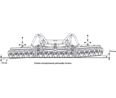 Отличительная конструктивная особенность бороны состоит в том, что каждый диск расположен на индивидуальной оси. Каждый ряд дисков имеет возможность регулировки угла атаки и рабочей ширины захвата диска. Отсутствие в конструкции изделий дисковых батарей с единой осью позволяет БДМ работать во влажную погоду на полях с большим количеством пожнивных остатков толстостебельных культур, а также на залежных землях с сорной растительностью, при этом исключается наматывание на ось диска растительных остатков и плотное забивание междискового пространства. Отпадает необходимость применения в конструкции чистиков, так как в процессе работы происходит самоочищение диска.