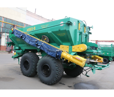 Машина агрегатируется с колёсными тракторами не ниже 3 тягового класса (Беларус-2022), имеющими выводы гидросистемы, пневмопривод тормозов, ВОМ, розетку для подключения светосигнального электрооборудования, тягово-сцепное устройство ТСУ-3В и розетку для подключения переносного электрооборудования (местного освещения).