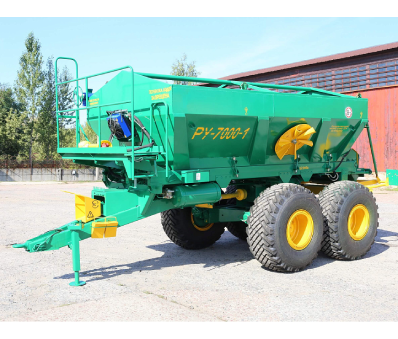 РУ-7000-1 имеет механический привод (от ВОМ-трактора) распределяющих центробежных органов (тарелок) и гидравлический привод подающего транспортера от гидросистемы трактора. Программирование и контроль дозы внесения осуществялется бортовым компьютером.