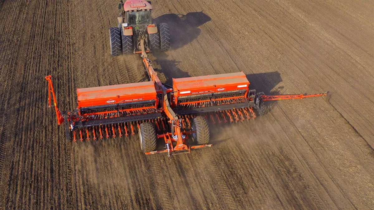 Требуется засеять больше гектаров площади, что требует вложений в новую сеялку, и в то же время вы не хотите заменять имеющийся трактор? Механическая сеялка PREMIA 9000 TRC с рабочей шириной 9,00 м - лучший инструмент для посева больших площадей на малых тракторах, но с высокими требованиями к производительности. Эта модель требует не более 120 л.с. мощности. Она объединяет в себе возможность сева и внесения удобрений. 60% объема бункера используется для семян, а 40% для удобрений. Все это подается в один ряд. Рабочие секции размером 4,50 м складываются вперед для перехода в транспортное положение – ширина при этом составляет 3,50 м.