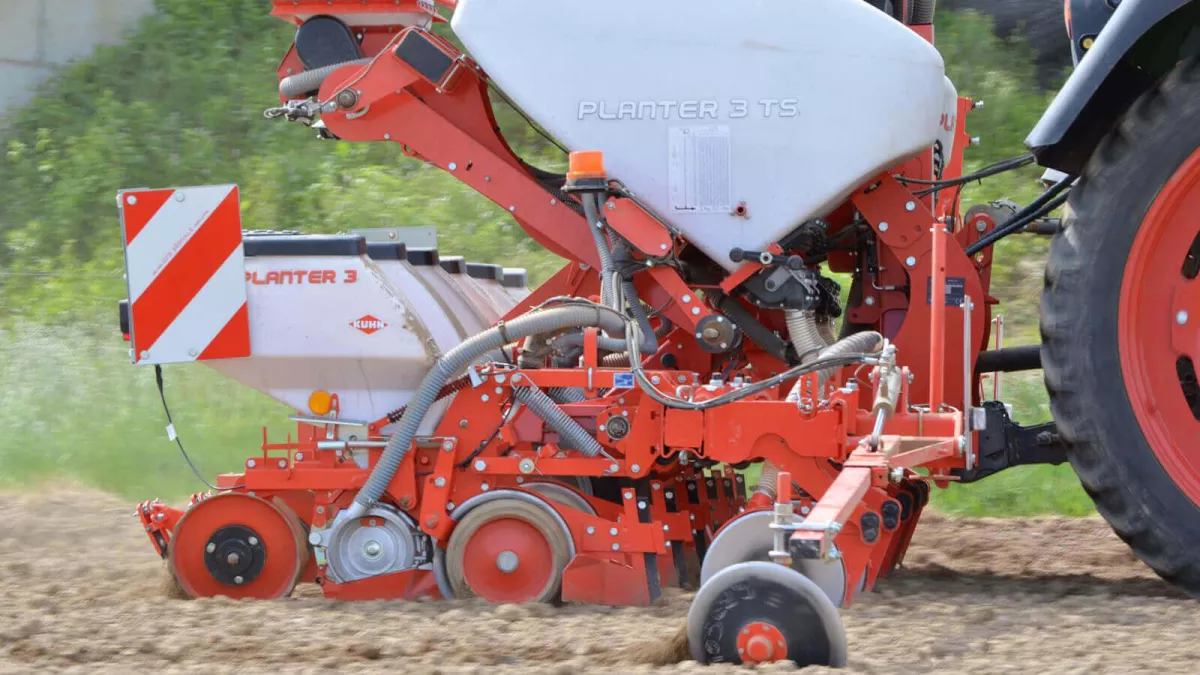 Серия PLANTER 3 дополнена моделью, предназначенной для крупных или даже очень крупных фермерских хозяйств, - PLANTER 3 TRS. Интенсивность посева обеспечивается 24 рядами и расстоянием между ними в 45 см для посева свеклы. Для адаптации к тракторам меньшей мощности можно переоборудовать сеялку под 16 или 18 рядов с расстоянием между ними в 70 см для посева кукурузы и подсолнечника. Данная сеялка имеет транспортную ширину 3,5 м. Что касается данной конфигурации, она характеризуется столь же точным высевом. Таким образом, вы будете иметь равномерную глубину и плотность посева с точной расстановкой, независимо от типа семян.