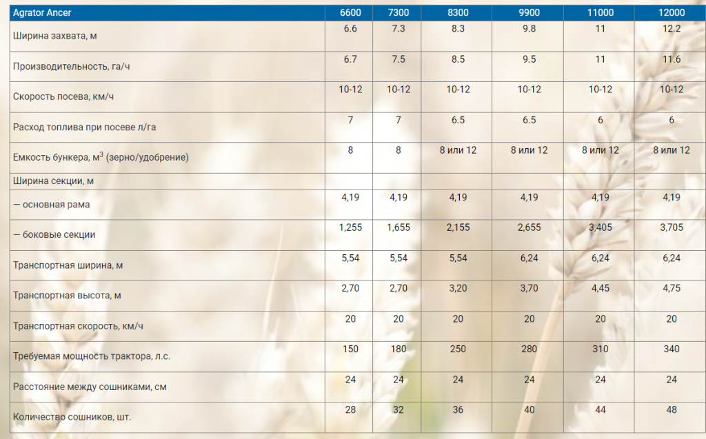- «AGRATOR ANCER» предназначен для посева без обработки (нулевой посев) и для посева на обработанных участках для всех типов почв.