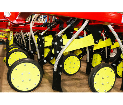 - Инновационная стойка сошника из пружинного материала и кронштейн с двойной пружиной обеспечивают копирование рельефа, не ломается при наезде на препятствия.
