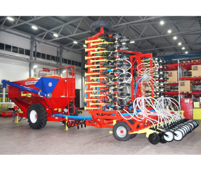 Посевной комплекс с дисковыми сошниками «AGRATOR-DISK» предоставляет хозяйствам совершенно новый уровень производительности и мобильности, удобства и безопасности. Резко сокращается потребность в людских ресурсах, не требуется грузчики и сеяльщики. Для работы достаточно одного тракториста. По сравнению с составным сеялочным агрегатом из СЗ-3,6 аналогичной ширины, производительность «AGRATOR-DISK» выше минимум в два раза. Электронная система контроля «Арыш» отражает все основные параметры работы посевного комплекса: состояние каждого семяпровода, уровень посевного материала и удобрений, скорость, площадь посева и т.д.