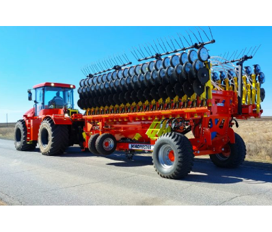 Еще одна новинка 2023 года – это механический дисковый посевной комплекс «Agrator Disk – 6000М» шириной захвата 6 метров. Особенностью этого комплекса является адаптация к передвижению по дорогам общего пользования. Ширина агрегата в транспортном положении 2,8 метров, высота – 2,6 м, длина – 8,9 м.