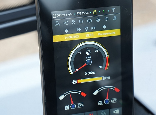 - Кабинным модулем, соответствующим требованиям безопасности FOPS ROPS (опция), с кондиционером и отопителем; шторками на переднем и верхнем окнах; цветным дисплеем с диагональю не менее 7"; комфортабельным креслом с мех. подвеской, высокой спинкой, подголовником и подлокотниками, и инерционным ремнем безопасности, и подогревом; стеклоочистителем переднего стекла; прикуривателем и аудио магнитолой.