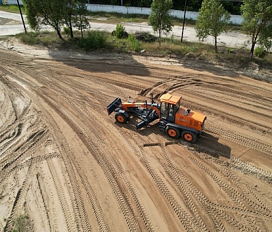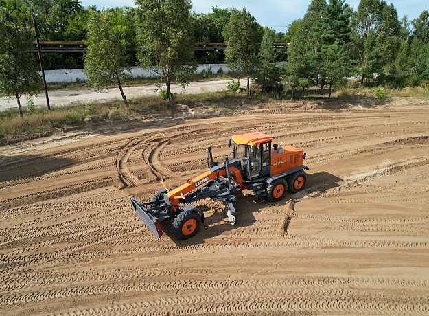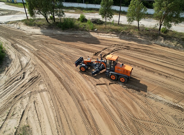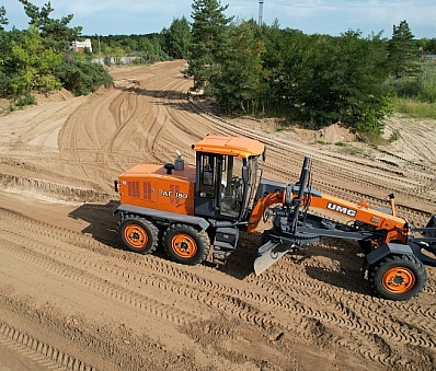 - Полноповоротный грейдерный отвал обеспечивает высокие технологические возможности автогрейдера
