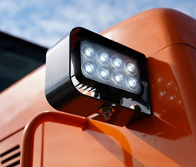 - Большой угол обзора, эффективное рабочее освещение, стеклоочистители на переднем и заднем окнах, позволяют сохранять оператору высокую производительность в различных погодных условиях.