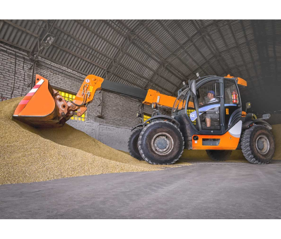 Погрузчик с телескопической стрелой AMKODOR Т400-70 предназначен для выполнения погрузочно-разгрузочных работ с сыпучими, кусковыми, объемными, вязкими материалами, штучными грузами, а также для производства монтажных работ. Погрузчик включает в себя самоходное шасси со смонтированным на нем оборудованием рабочим. Погрузчик оборудован системой безопасности, защищающей от потери продольной устойчивости.