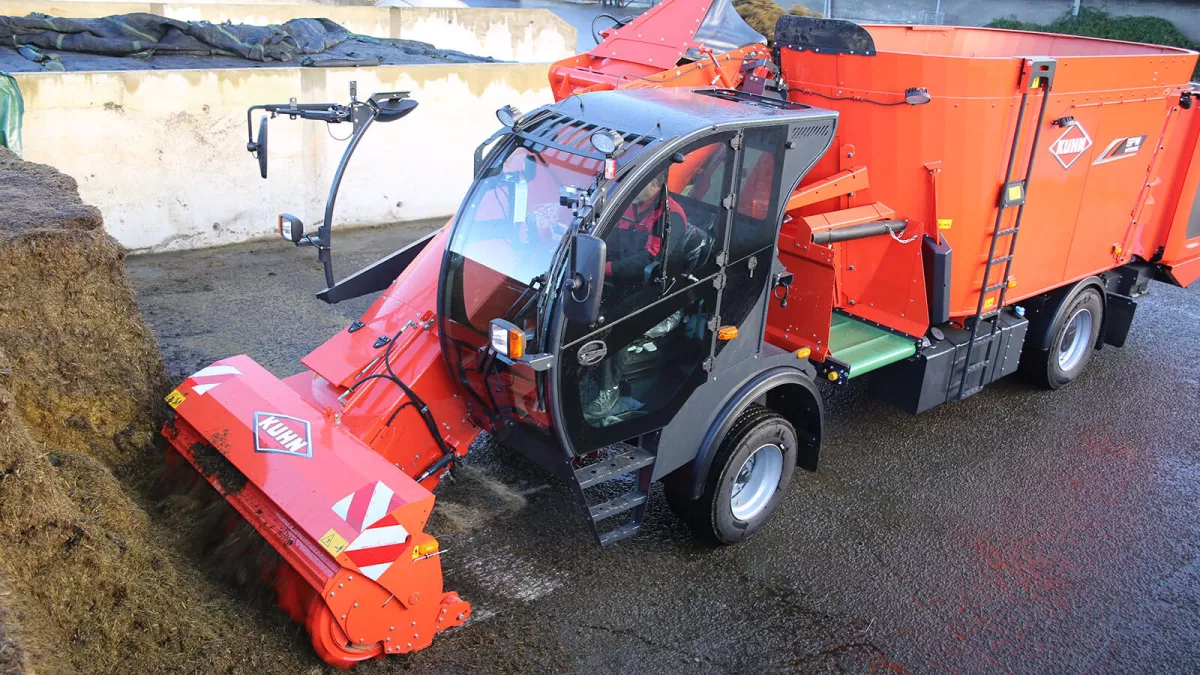 Площадь окон в новой кабине VISIOSPACE увеличена на 20% по сравнению с предыдущим вариантом исполнения. Новая конструкция VISIOSPACE обеспечивает лучшую видимость на всем рынке. Все препятствия для фронтального обзора были устранены для обеспечения максимальной точности во время ключевых операций по заходу в силос. Большое окно дверцы также обеспечивает безопасное вождение. Лобовое стекло покрыто самонагревающейся пленкой, что гарантирует быструю работу смесителя-раздатчика даже при утренних заморозках или при скоплении конденсата при передвижении со двора в сарай. Очистка лобового стекла производится с помощью двойных стеклоочистителей, монтируемых на установку высотой 1400 мм, с 3 распылительными форсунками.
