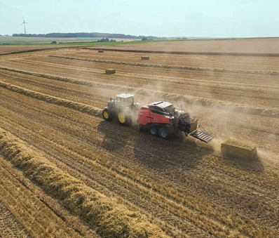 - Дает возможность работать с тракторами одинакового размера сравнительно с пресс-подборщиками 120 x 90.