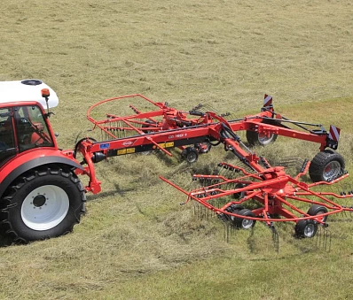 Они оснащены граблинами с двумя изгибами в гипертангенциальном положении, которые обеспечивает высокое качество валкования и формирование идеальных валков для быстрой сушки массы. Эти валкообразователи обладают всеми функциями, необходимыми для осуществления высококлассной кормозаготовки, имея при этом приемлемую стоимость и высокую маневренность.
