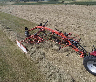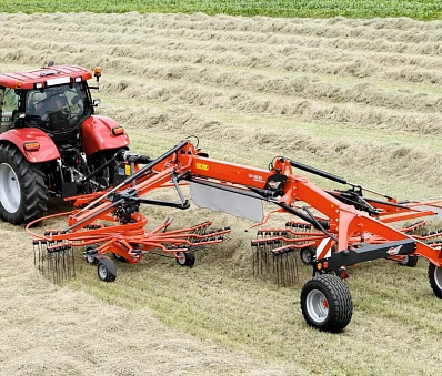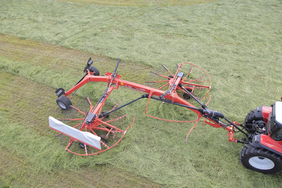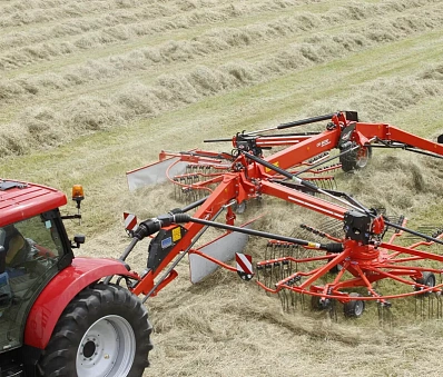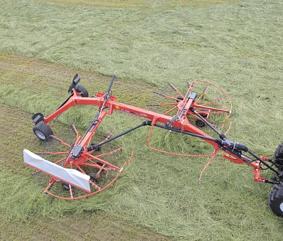 С помощью этих валковообразователей с боковой укладкой вы можете контролировать объем растительной массы в валке: образование отдельных валков или совмещение двух проходов для формирования одного валка. Вы также можете регулировать рабочую ширину для получения оптимального размера валка. Результат: оптимизация производительности для одного гектара при последующей работе пресс-подборщиков и другой уборочной техники. Данная модель позволяет осуществлять укладку в один или два отдельных валка. Вы оцените ее универсальность при переворачивании двух валков для более быстрой сушки и более эффективного валкования в ночное время. При укладке двух валков процесс сушки тяжелых культур также проходит быстрее.