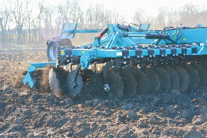Взаимное расположение дисков рабочих органов, а также пружинного блока защиты от перегрузок позволяют работать на каменистых почвах и на полях с большим количеством растительных остатков.