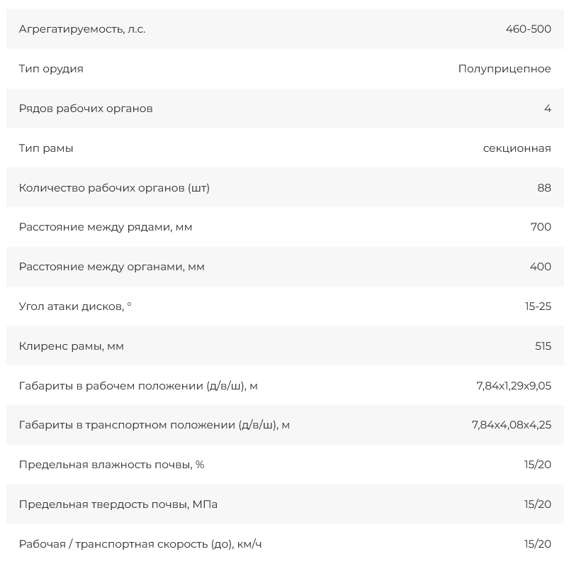Орудие обеспечивает сплошную обработку по всей ширине захвата.