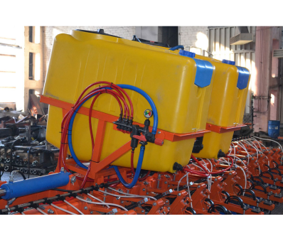 Система внесения жидких удобрений устанавливается на раму культиватора и легко демонтируется. Суммарный объём двух ёмкостей – 1200 л. Насос с гидроприводом итальянского производства способен обеспечить нормы внесения КАС от 30 до 300 кг/га. Регулировка нормы внесения осуществляется посредством распределителя – регулятора давления.