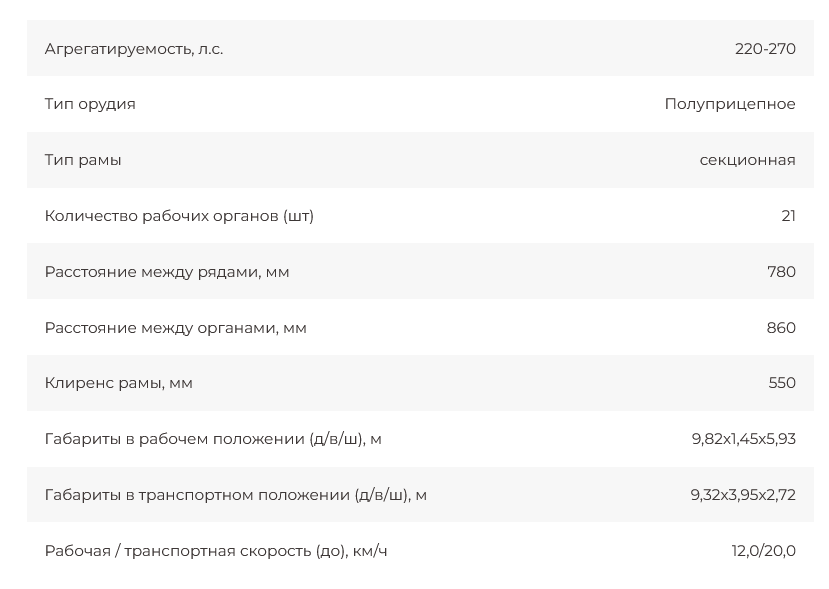 Орудие обеспечивает сплошную обработку по всей ширине захвата.