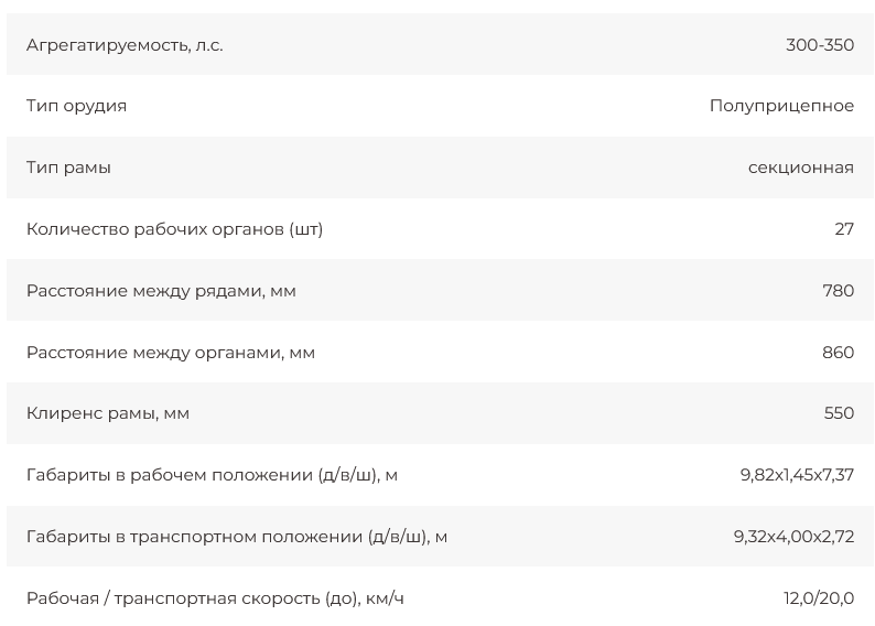 Орудие обеспечивает сплошную обработку по всей ширине захвата.
