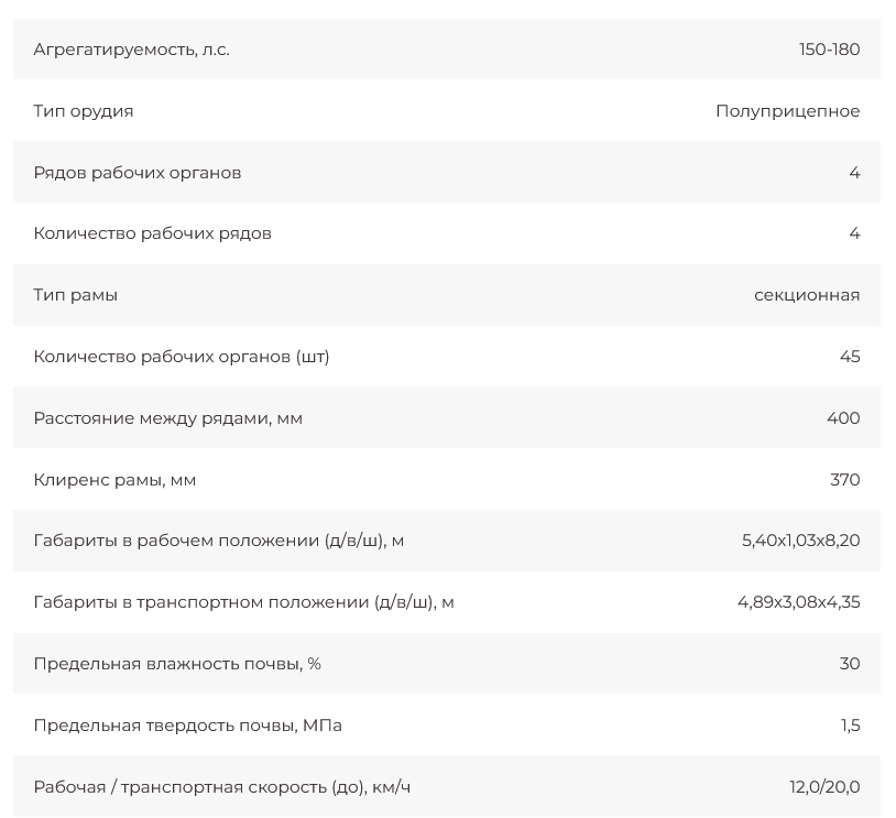 Орудие обеспечивает сплошную обработку по всей ширине захвата.