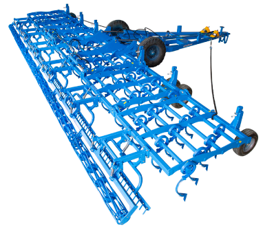 • Удобная система складывания. Техника быстро переводится из рабочего в транспортируемое положения в полевых условиях. Размеры сложенного культиватора позволяют легко перевозить его к месту проведения работ по бездорожью.