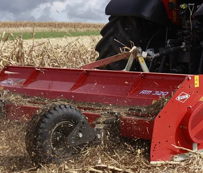 Высота измельчения растительной биомассы настраивается либо при помощи поворотных колес, которые регулируются по высоте и в боковом направлении, для измельчения растительных остатков, либо при помощи катка для обработки паровых и лугопастбищных территорий.